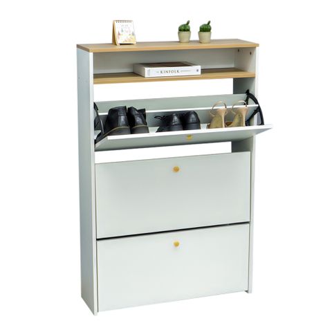 Tủ Giày Thông Minh GAPI Mutil 3 Tầng Màu Trắng Phối Gỗ - GP112